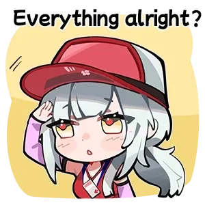 You absently reach for her visor; she tucks your hand against her hair. “Are you worried I might come down with heatstroke too? Hehe… don’t worry about me. I’ll be fine.”