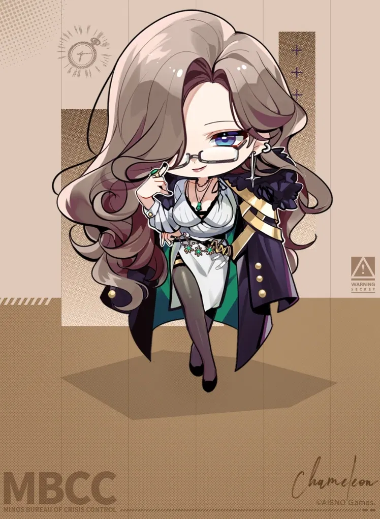 Chameleon Theseus (MBCC ID: MBCC-S-052) is THE Hypnotist and psychologist. She's a Sinner, and formerly a psychologist specialist for DisCity's various departments and bureaus, including the 9th Agency. Nowadays she's a detained Sinner and a quiet storm in MBCC. She walks in with ash-blonde hair, slim half-rim glasses, and a white wrap dress that moves like water. A black coat with teal lining drapes over her shoulders. The pocket watch in her hand is theater and she fidgeting with them often, opening and closing it to make a sound. The eyes are the real tool. She asks one soft question and the room slows down, weaponizing psychology for her own benefits.